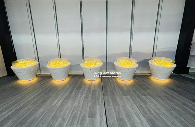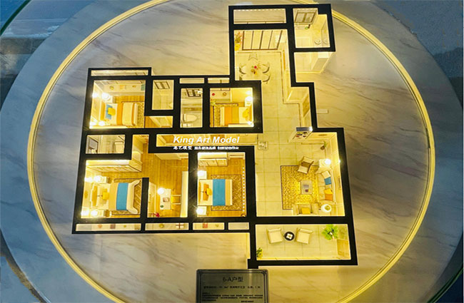 根据模型展示空间,结合本项目的建设特点,港艺将模型比例设计为1:90,以欧式风格元素意境作为创造灵感,将项目本身的设计理念完美还原沙盘模型设计中,所有工艺及用材用料均以体现高端、品质为核心来创作。